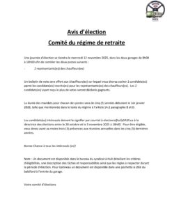 • Avis d’élection pour régime de retraite le 13 October 2025
